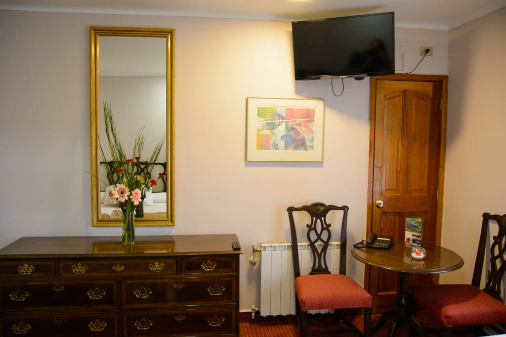 Nuestras habitaciones se encuentran bien equipadas para que su estadía sea mucho más placentera. Con televisión por cable, internet inalámbrico, calefacción, baño privado, teléfono, cómodas camas y desayuno buffet. Además ponemos a su disposición un amplio estacionamiento.